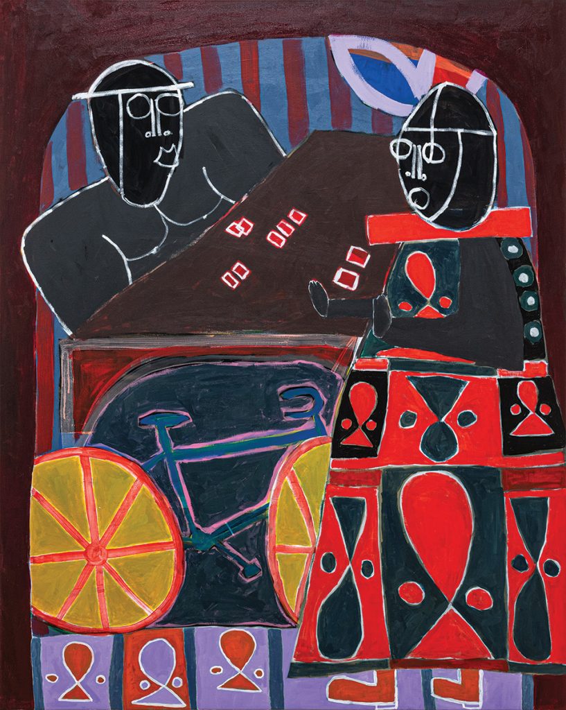 Working with a multitude of different materials, literally “everything to build with”—language found on a thrifted yardstick—Matha transforms the overlooked and discarded into bold, unexpected stories