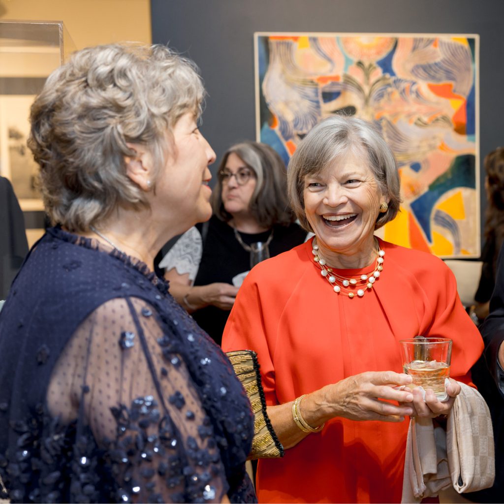 Art Ball 2021, Hyde Award for Wisconsin Art Awardees Loraine Budke and Andrea Sellinger with MOWA Board Member Prudy Pick Hway (center)