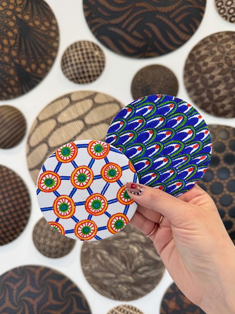 Create a magnet using repetitive zentangle-style doodle patterns. Seek inspiration from the stunning surface designs featured in Kelly Jean Ohl’s ceramic work.